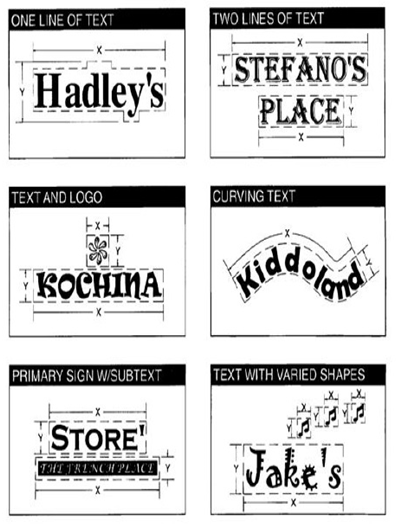 SIGN COPY. The particular lettering or graphics used to identify the business.