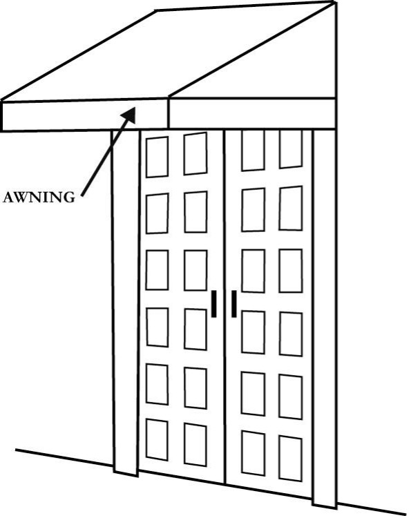 Awning: A roof like cover, temporary in nature, which projects from the wall of a building and overhangs the public way.