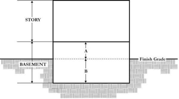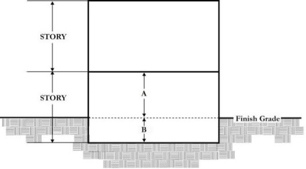 If the average of "A" is greater than 1/2 of "B", this is counted as a story for height measurements.