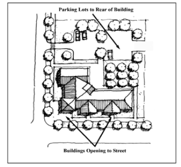 Sec. 7.29.090(J)(i)(A) Site Layout and Design. Buildings shall reinforce the street
