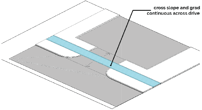 Driveways, except for a driveway to reach the side yard or rear yard or an on-site parking facility, are not permitted between the sidewalk and a building, and shall be perpendicular to any adjacent street.