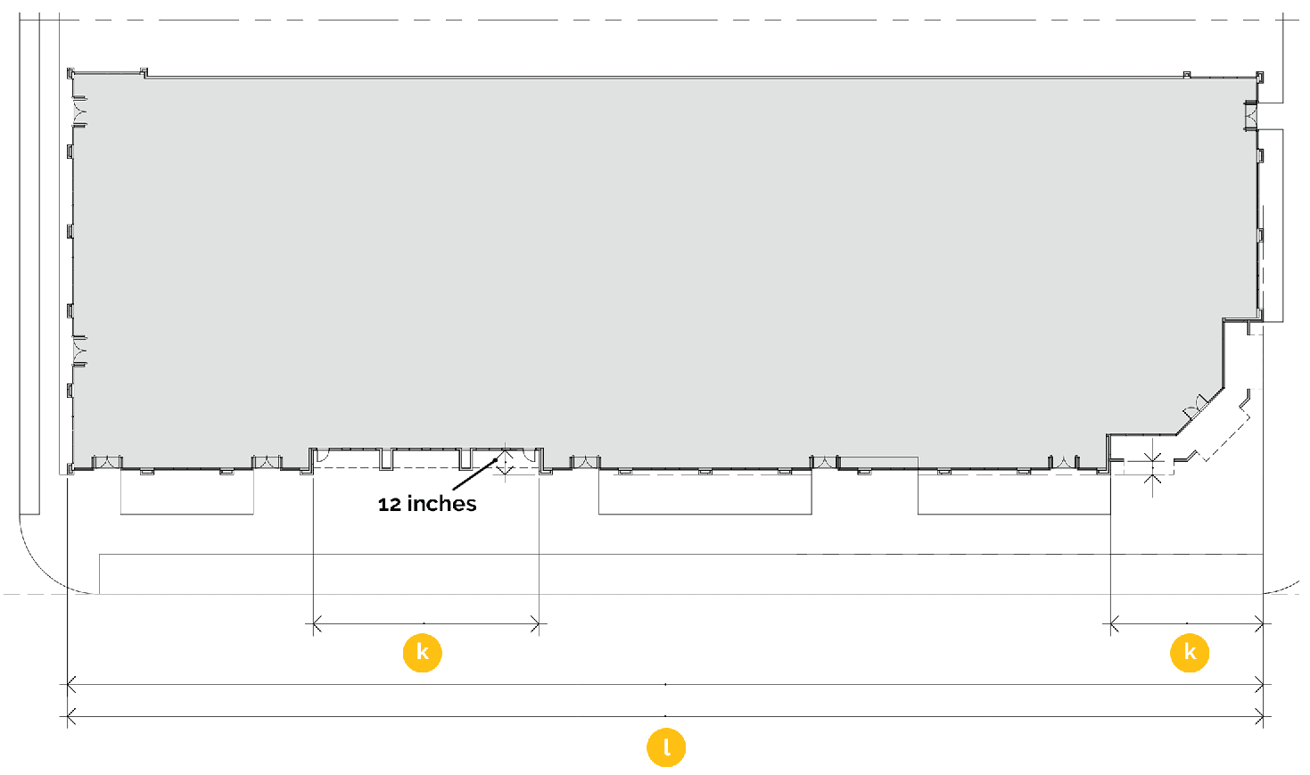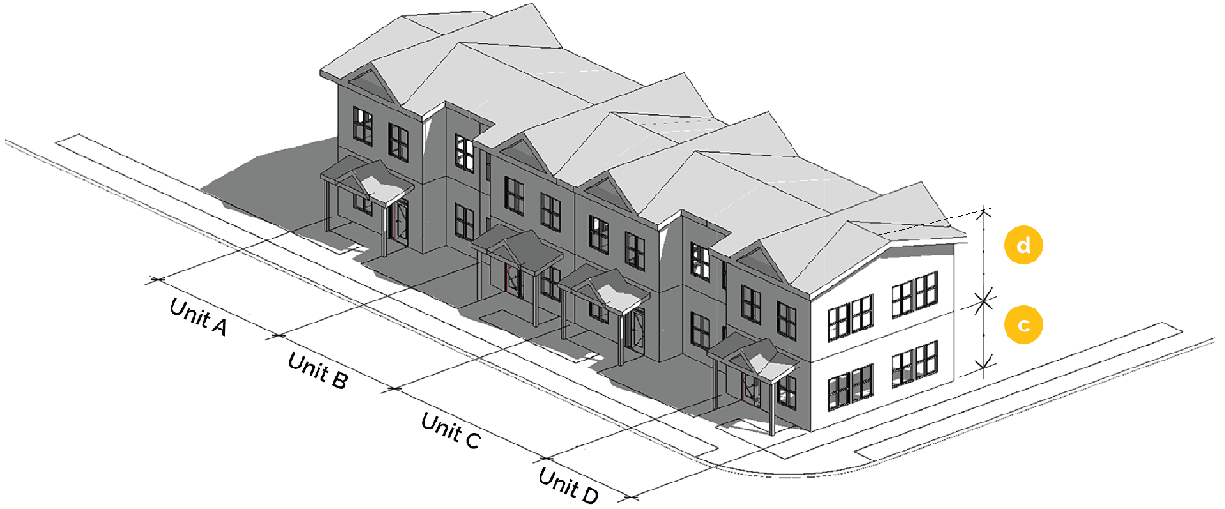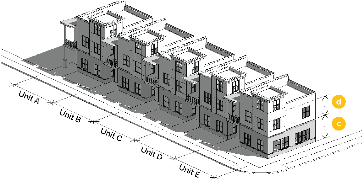 One (1) of the following to divide the façade into vertical divisions at increments no greater than the maximum width dimensions shown for a façade type, as measured along the base of the façade. Required division frequency is identified on table 21-3.2.9 - façade types.