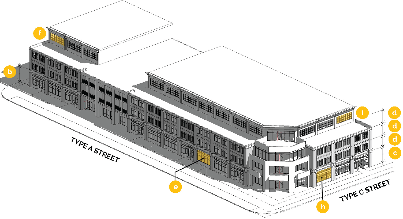 Type A. Type A streets are intended to establish a series of comfortably scaled streets with continuous building frontage and a limited number of drives interrupting the sidewalk. Type A streets support a robust pedestrian realm by prioritizing bicyclists and pedestrians for a more balanced transportation route and support local retailers and business owners by encouraging a vibrant and activated public realm.