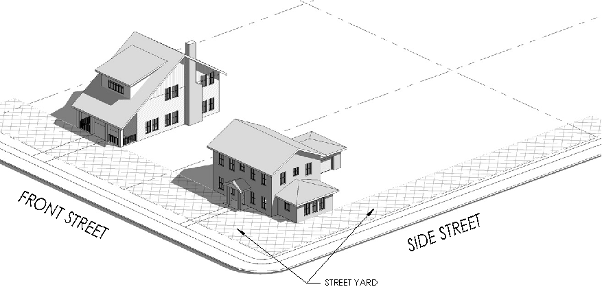 Frontage line: A lot line bordering a street or right-of-way. Façades facing frontage lines define the public realm and are therefore more regulated than the elevations facing other lot lines.