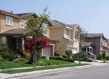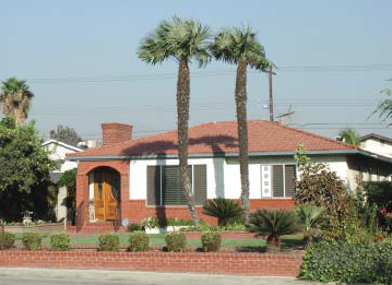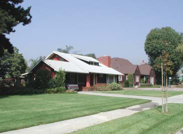 Building Fabric. The typical buildings in the southwest neighborhoods are one-story, single-family residential with attached garages. These houses were constructed between 1950s and 1970s, and are of simple wood construction with a stucco finish and wood trim. Some residences have brick masonry details incorporated into the front elevations. The notable exception is the recent Parkside single-family development. There is some multi-family apartment housing located west of Vernon Avenue. Additionally, a large mobile home park is located near Vernon Avenue, between Gladstone Street and Little Dalton Wash.