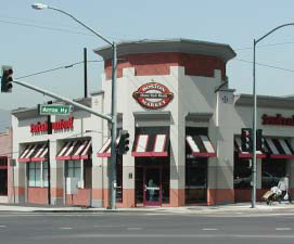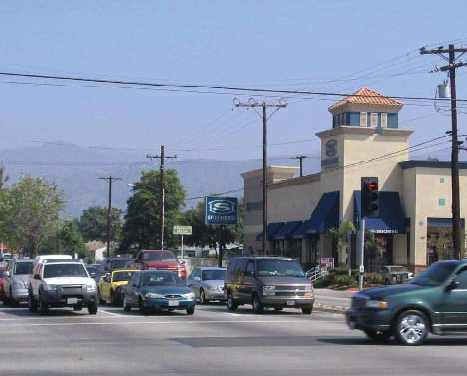 Building Fabric. There is an almost equal mix of single-family and multi-family housing and motels on Arrow Highway. However, most buildings face parallel to local streets and turn their sides or backs to Arrow Highway. There are drive-through uses such as fast food outlets and gas stations at several of the cross street intersections.