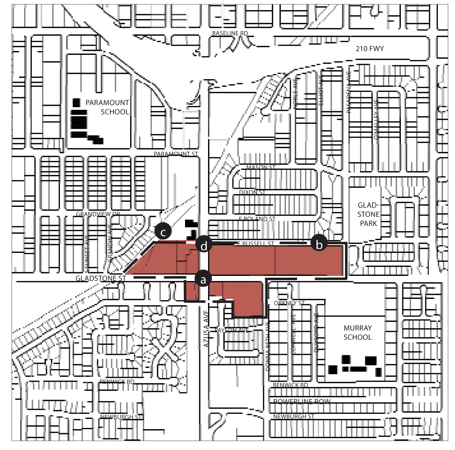 Promote a mixed-use, pedestrian-oriented neighborhood center at the intersection of Vernon Avenue and Gladstone Street that enhances existing retail. Improvements should include enhanced crosswalks at the intersection, and a shared parking program for commercial and retail uses.