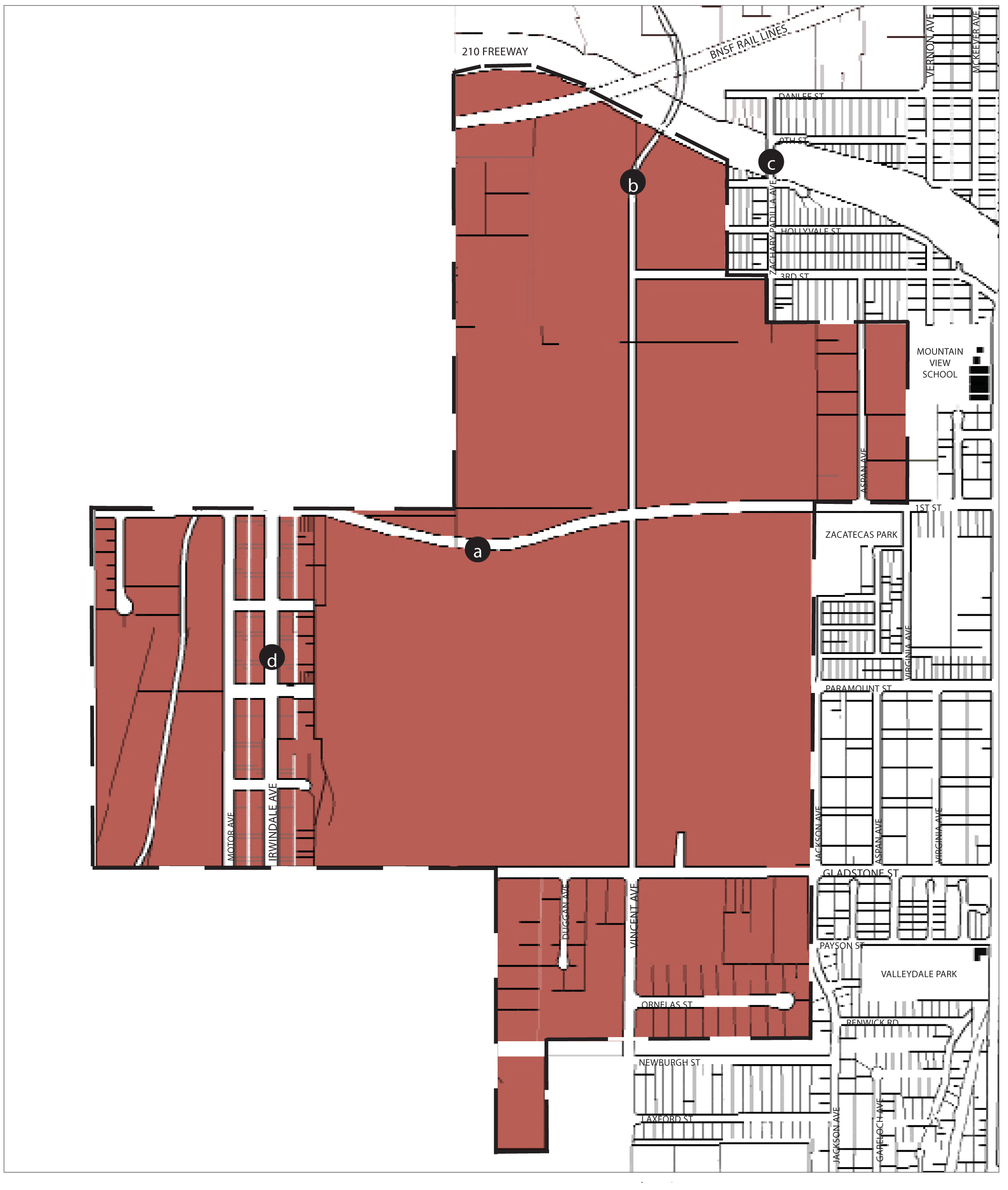 Connect 1st Street with an extended Vincent/Todd Avenue and Irwindale Avenue.