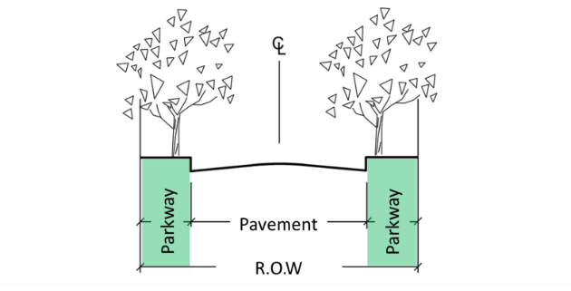 Adjacent, adjoining and contiguous to. It may also mean having a lot line in common with a right-of-way or easement, or with a physical improvement such as a street, waterline, park, or open space.