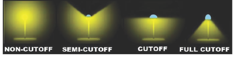 Lighting design for multifamily, office, commercial and industrial developments. All new exterior lighting fixtures installed within the city for multifamily, office, commercial or industrial developments shall utilize cutoff or full cutoff designs to ensure that no light is emitted above a horizontal plane, as depicted in the graphic below. The replacement of fixtures within existing projects in the city shall be brought into compliance with this section.