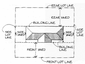 Yard, Interior Side is an area extending from the required front yard or, where there is no required front yard, from the front lot line to the required rear yard or, where there is no required rear yard, to the rear lot line and from the interior side lot line to a setback line parallel thereto.