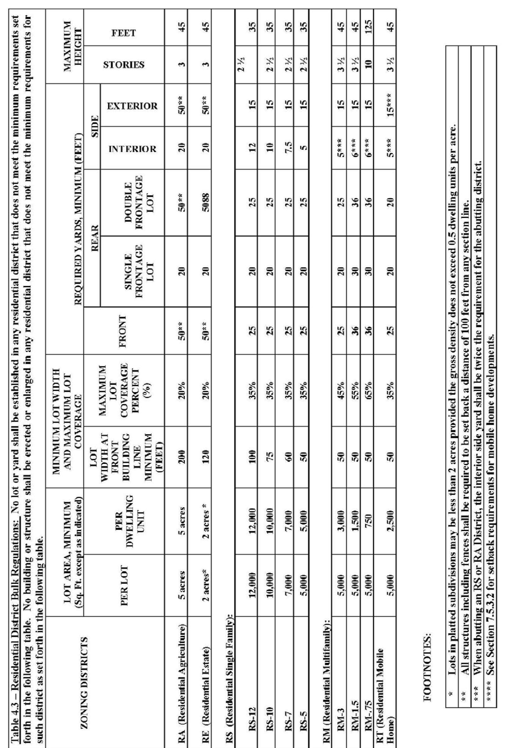 RS District Bulk Regulations. Zoning district bulk regulations for the RS Districts are set forth in Table 4.3.
