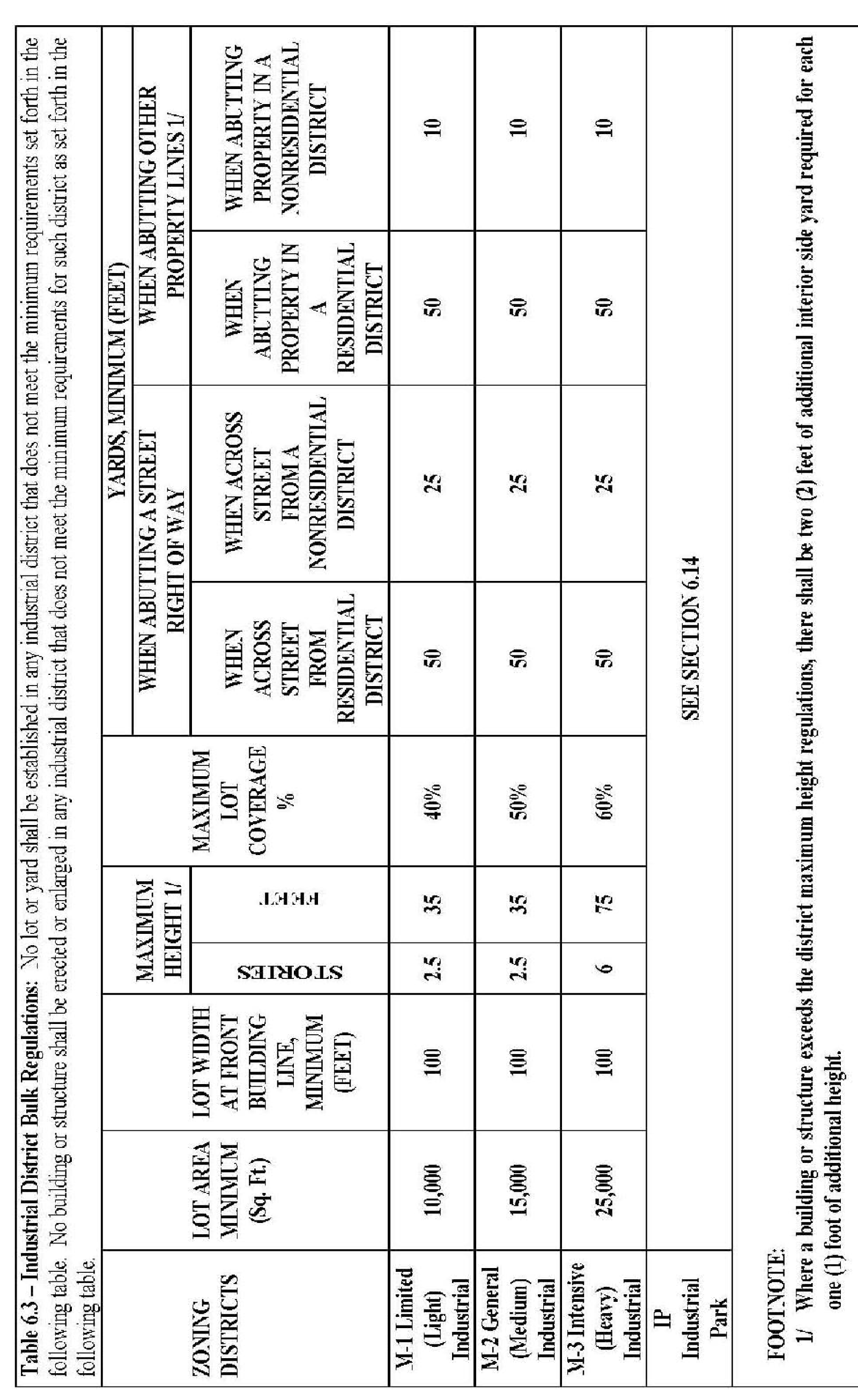 District Bulk Regulations. Zoning District Bulk Regulations for the M-3 District are set forth in Table 6.3.