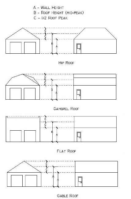The average height between the eaves and the ridge for a gable, hip, studio (shed), or gambrel roof; or