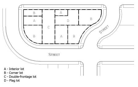 Lot, interior means a lot other than a corner lot or through lot that has frontage on one street (see illustration 2-3).
