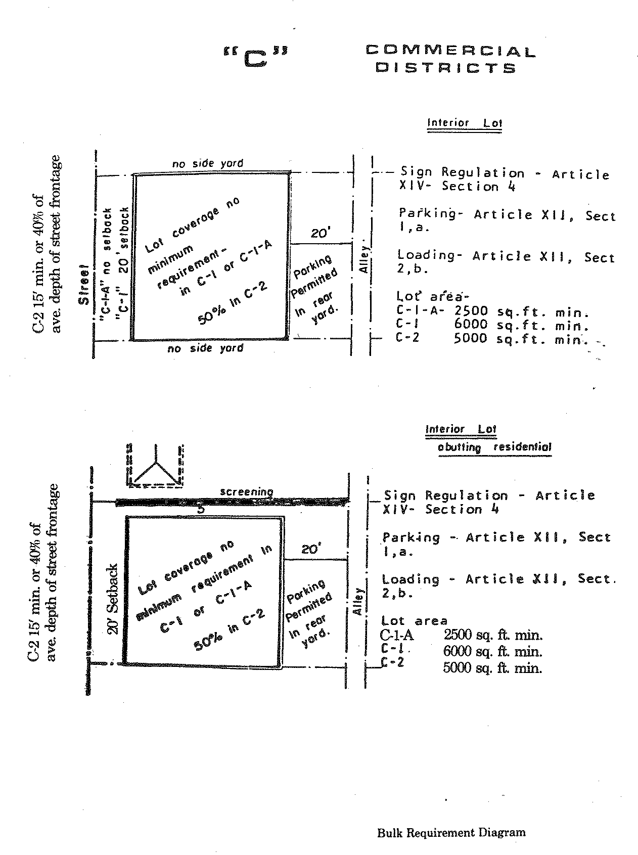 Lot area. There shall be a lot area of not less than five thousand (5,000) square feet, except for residential which shall conform to R-1 or R-2 lot area requirements, whichever is applicable.