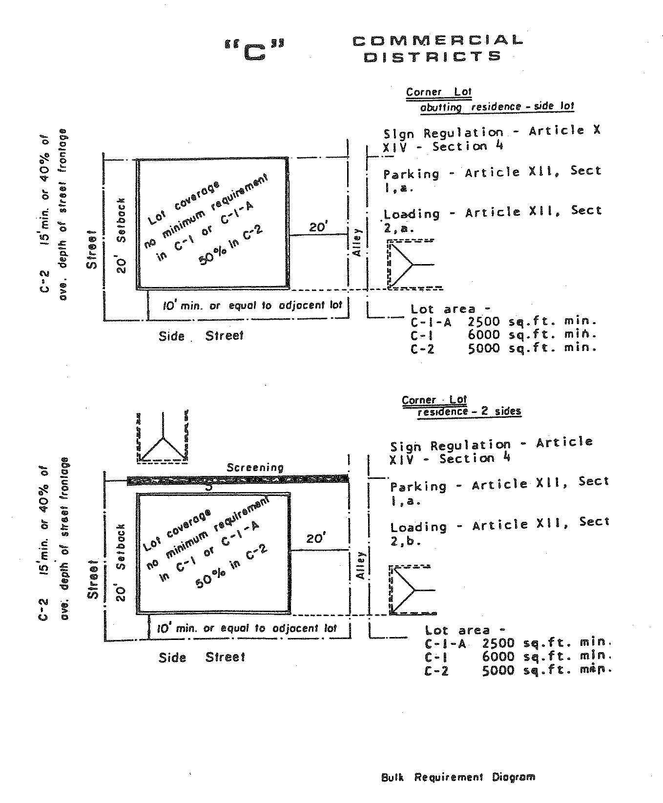 Side yard. No side yard required except when the lot abuts a residential district, then the requirements for such abutment of the C-1 district shall be met. Residential lots shall conform to the R-1 side yard requirements.