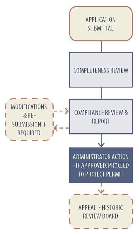 Determination of Compliance: Once an application is deemed complete by the Administrator, the Administrator shall review the application and approve or deny it based on compliance with the standards contained in this Code.