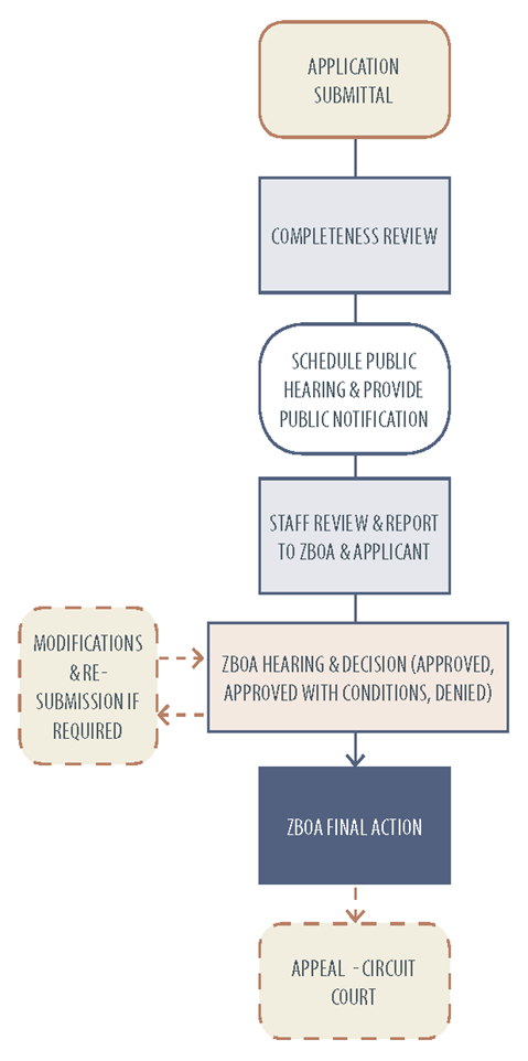 After review of the application and the public hearing, the ZBOA shall make a written finding and approve, approve with modifications or conditions, or disapprove the request.