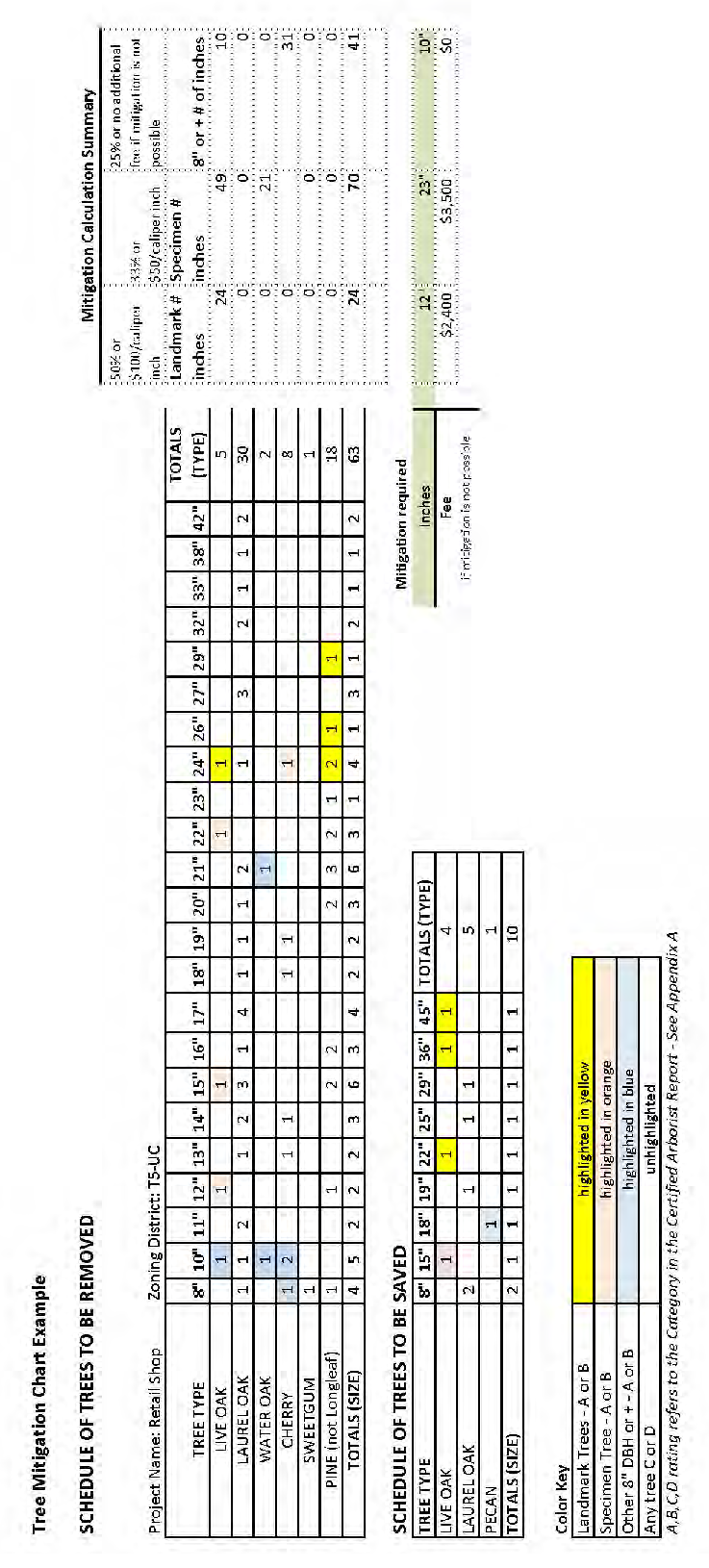 The report format for specimen and landmark trees that are requested for removal should be placed into four categories based on structural and physical health factors, with each category highlighted with a specific color on the site plan: