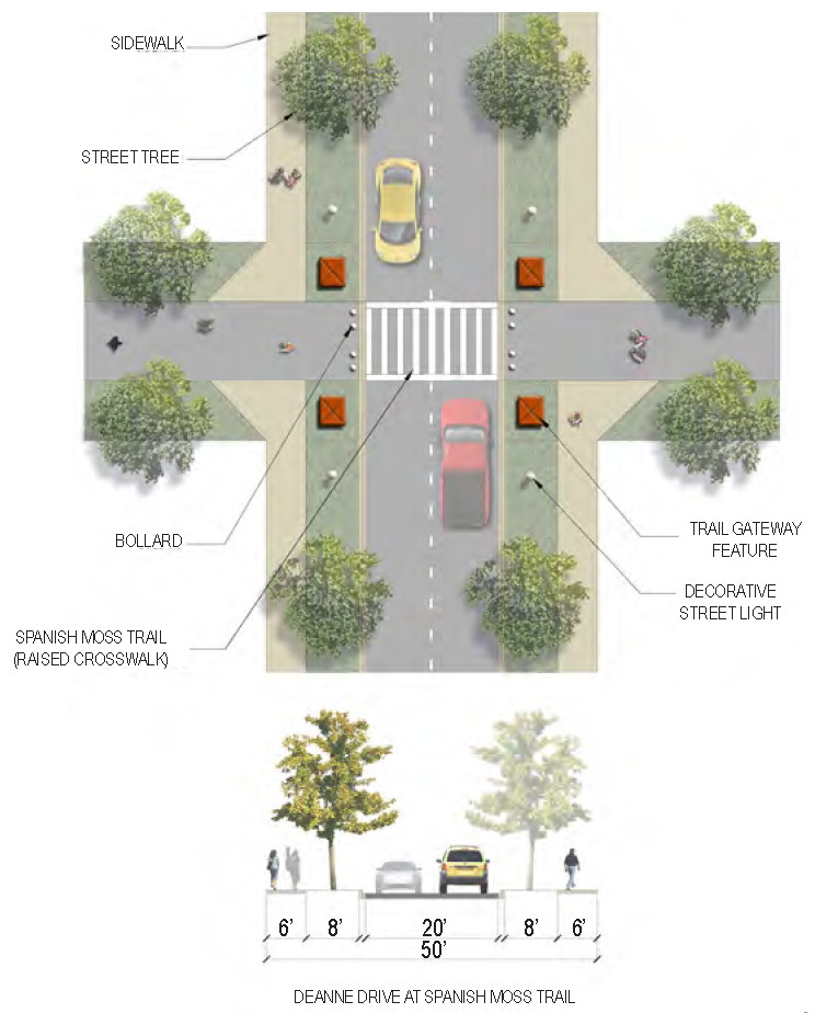 Applicability | • Reynolds Street to Allison Road. No specific street section has been designed for this portion of Ribaut. However the following elements, occurring outside of the travel lanes, should be taken into consideration particularly to improve pedestrian and bike safety. |