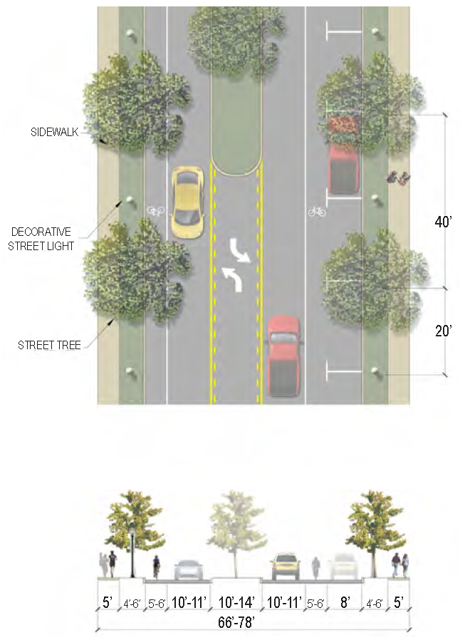 | Bike Facilities | Multi-use path on west side (would require additional R.O.W.) or separate 4 foot wide bike lanes |