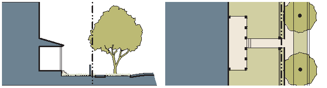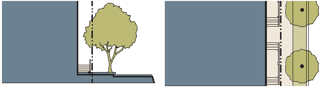 Frontage Type: No frontage type is prescribed unless the building is close to the street; in which case, appropriate frontage types are: porch, stoop.