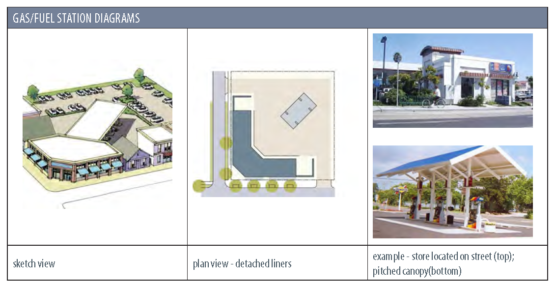 Some of the building types listed have specific uses implied (e.g., Gas/Fuel Station) while others may be used flexibly for multiple uses.
