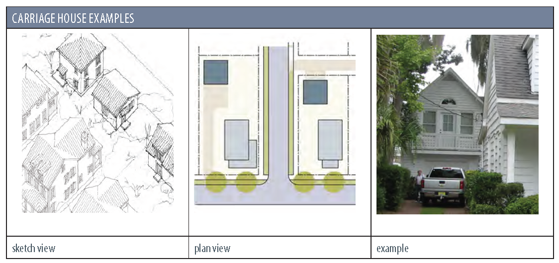 Parking: 1 parking space per Carriage House is required, and shall be clearly defined. See Section 7.3 for additional parking standards.