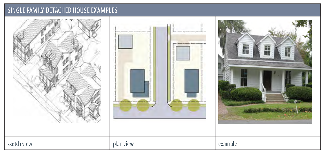 The transect provides a framework for determining where specific types of buildings can be located. This section gives an overview of the most common building types in Beaufort, and where and how they are permitted based on their transect zone. Some building types are permitted in multiple zones, but have different requirements based on their district. In case of a conflict between this section and Article 2, whichever requirement is stricter shall take precedence.