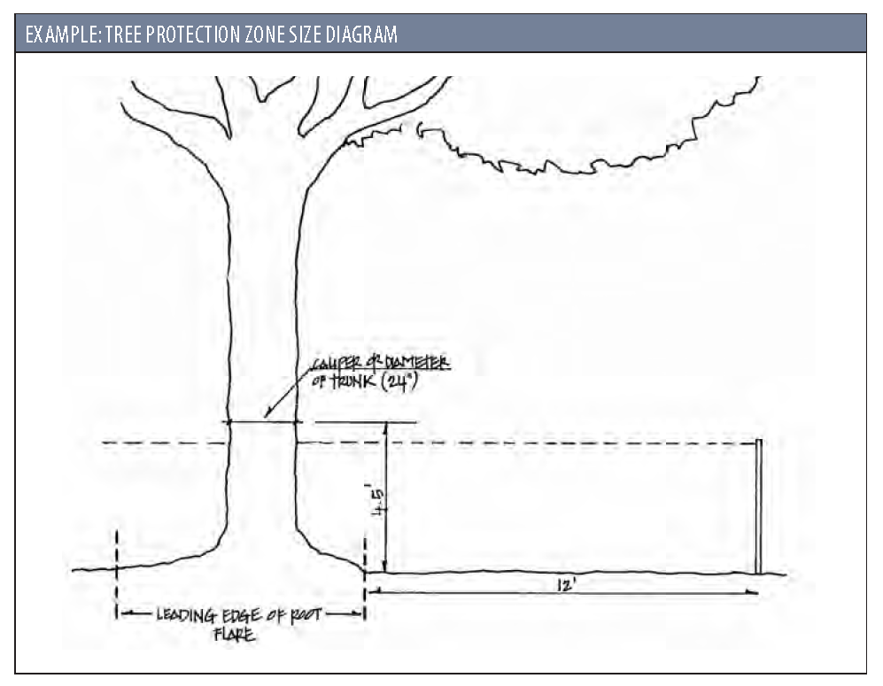 Tree Protection Zone. The area reserved around a tree or group of trees in which no grading, access, stockpiling, or other construction activity shall occur, the extent of which will be determined by the proposed site design and existing site conditions. See Section 5.3.3 for specific requirements.