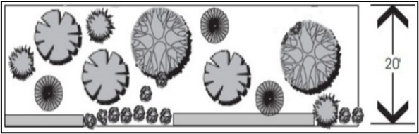Perimeter buffers are intended to provide spatial separation between uses of differing intensities. Buffers that are required for protection of environmentally sensitive areas are prescribed by Section 8 (Environmental and Resource Protection).
