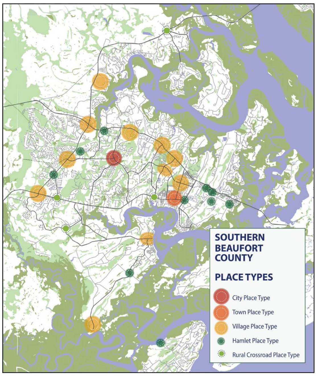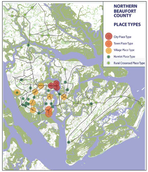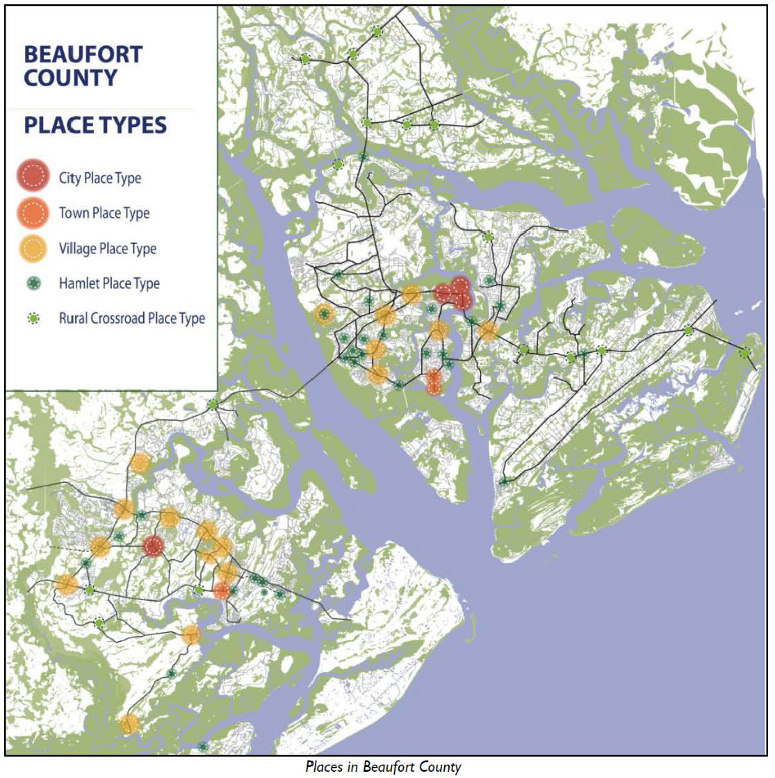 Northern Beaufort County Regional Plan, "Common Goal 6: Northern Beaufort County will maintain a distinct regional form of compact urban and suburban development surrounded by rural development for the purpose of reinforcing the valuable sense of unique and high quality places within the region."