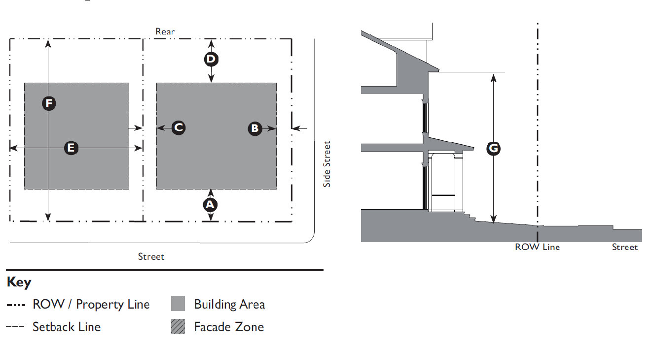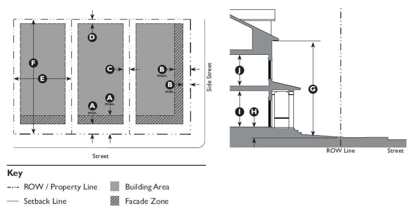 Size and Intensity of place types. The minimum and maximum site area and maximum density of place types are established in Table 3.4.80.D.