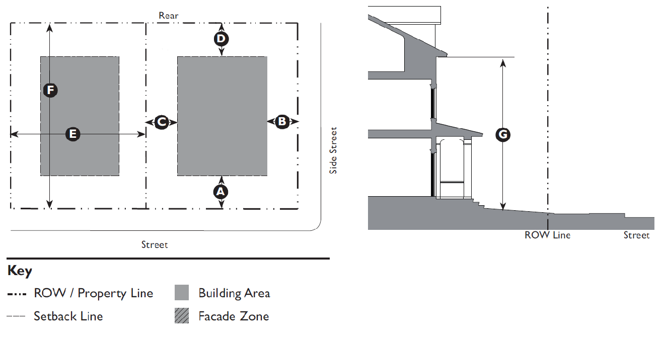 The conventional zones are described in Division 3.3 (Conventional Zones). The conventional zones are primarily the zones that are more auto-dependent, such as single-family subdivisions, other suburban residential areas, auto-dependent commercial and retail areas, and industrial areas.