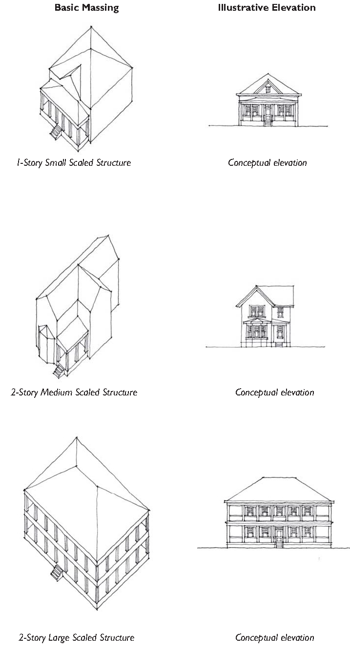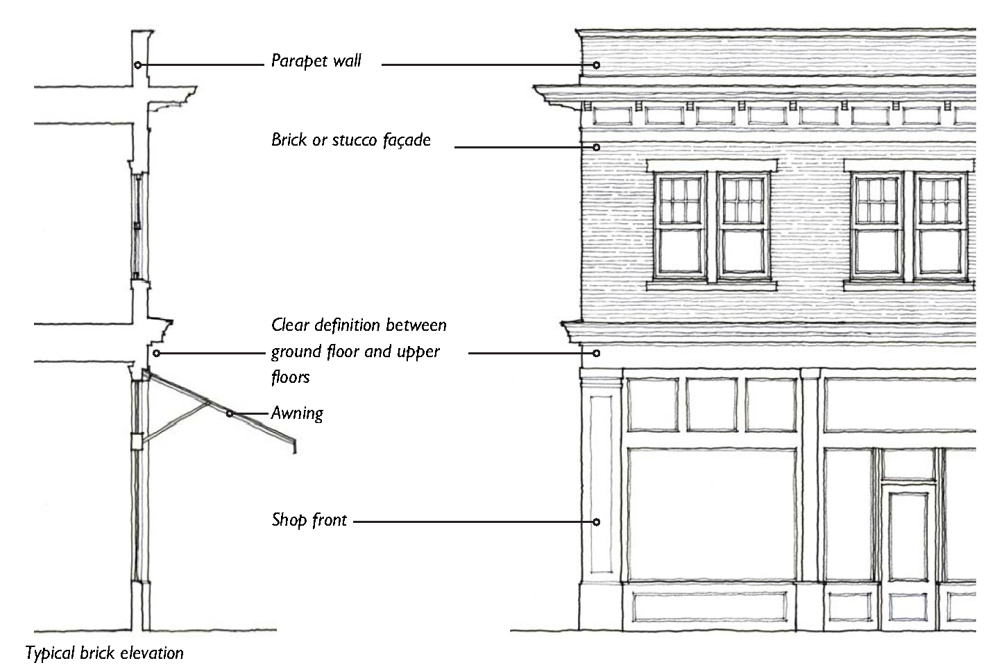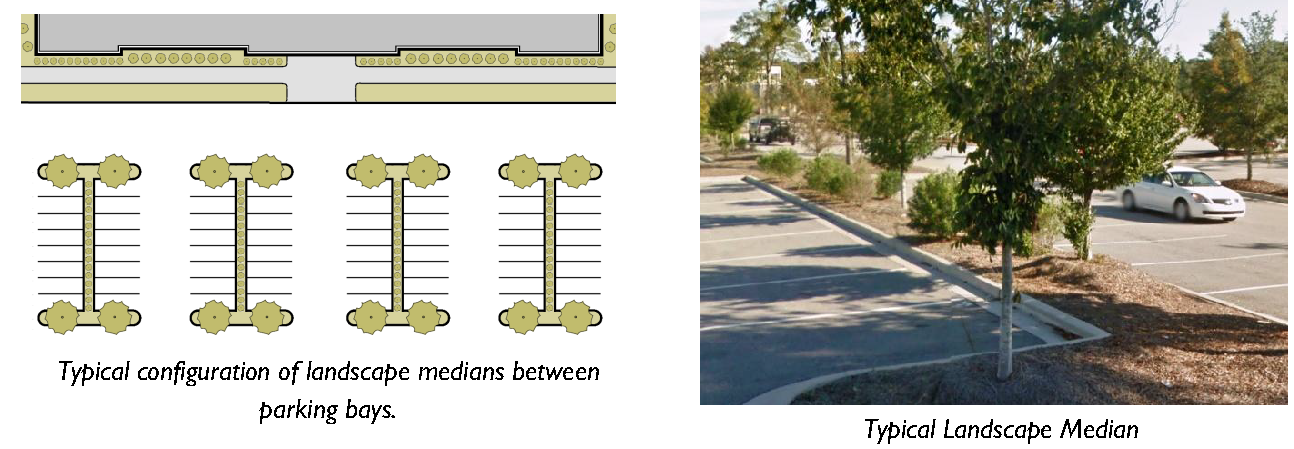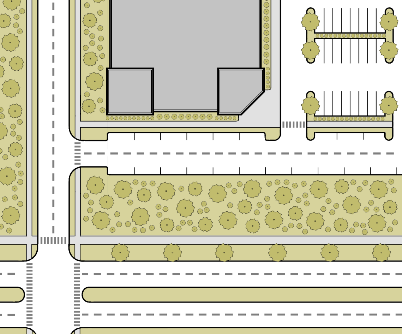 Using landscape material to visually define the hierarchy of roadways, and to provide shade and a visual edge along roadways;