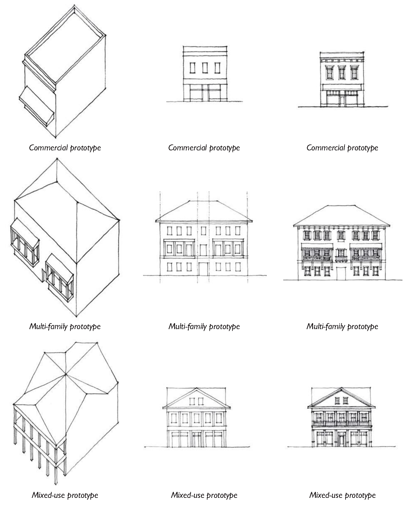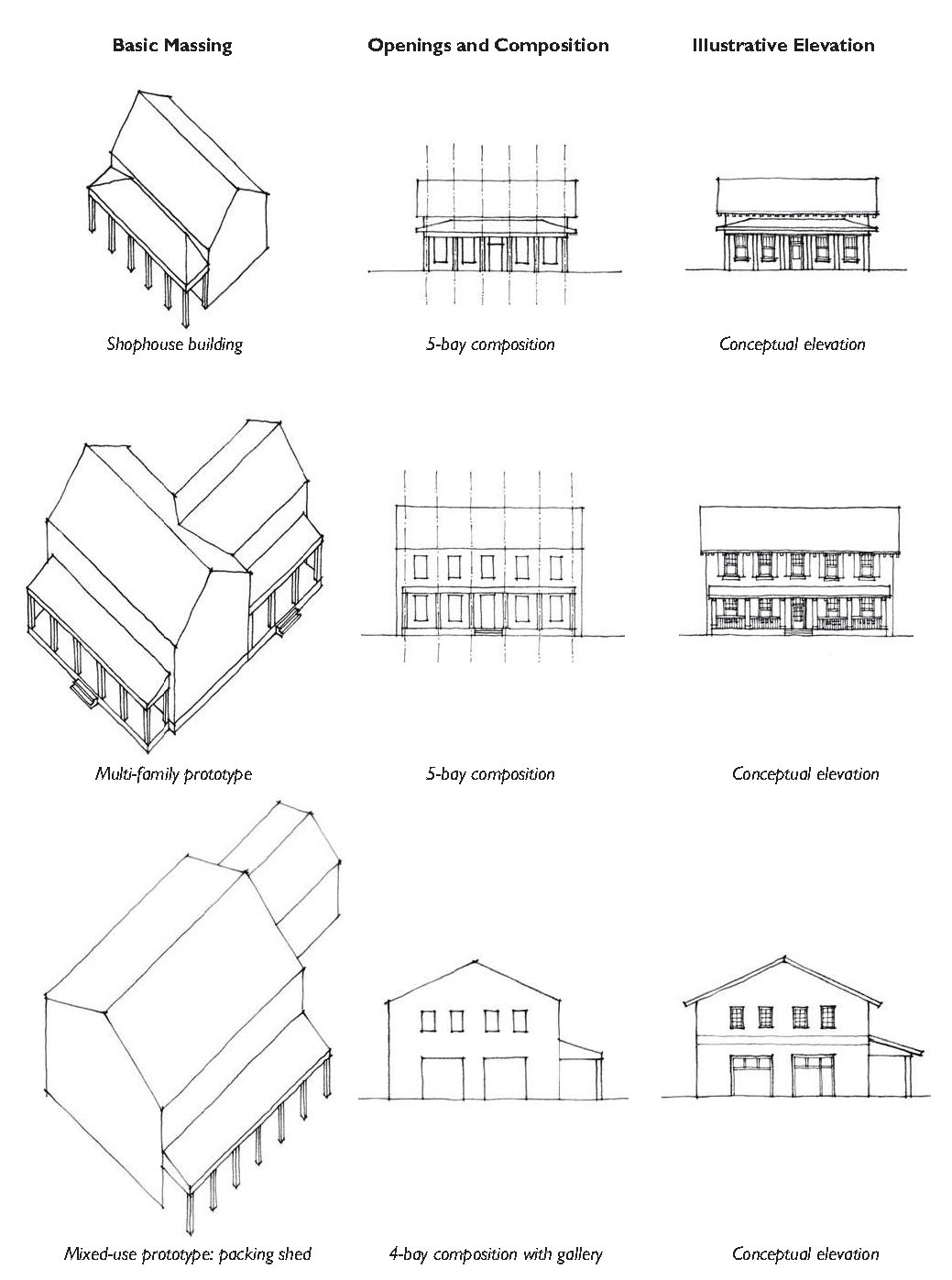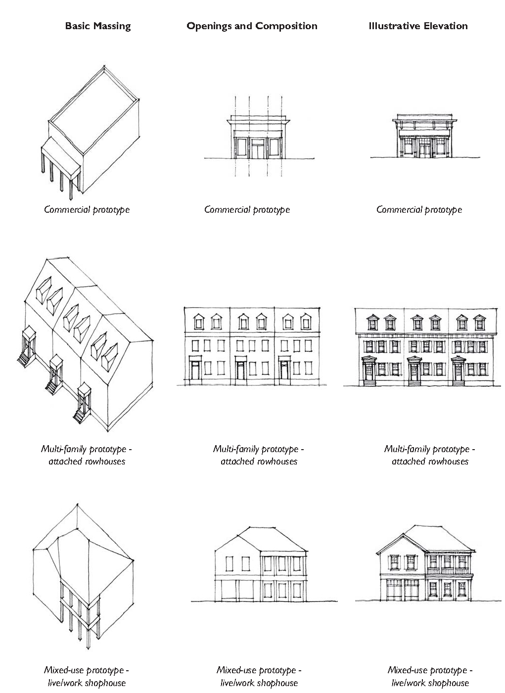 Using landscape material to visually define the hierarchy of roadways, and to provide shade and a visual edge along roadways;