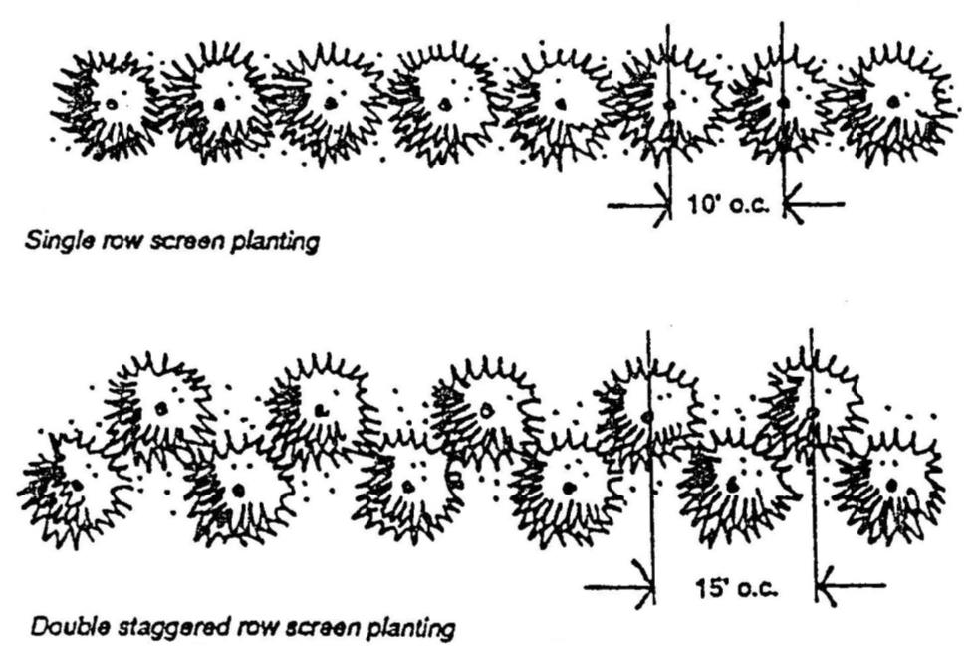 Landscaping shall be provided as a visual buffer on the perimeter of the travel park and at the entry to the travel park to create privacy and reduce noise throughout the site. A solid fence or berm may be used as the visual buffer to screen the site around the perimeter. The type, height, and material of a fence or berm shall be approved through the conditional use permit process. Wherever possible, existing trees should be retained on the site. Chain link fencing shall not be used for buffering.