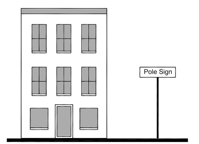 Pole mounted signs shall not be permitted except when located on parcels zoned B-2 and located on a property adjacent to a public street or highway that has a minimum posted speed limit of 45 miles per hour.