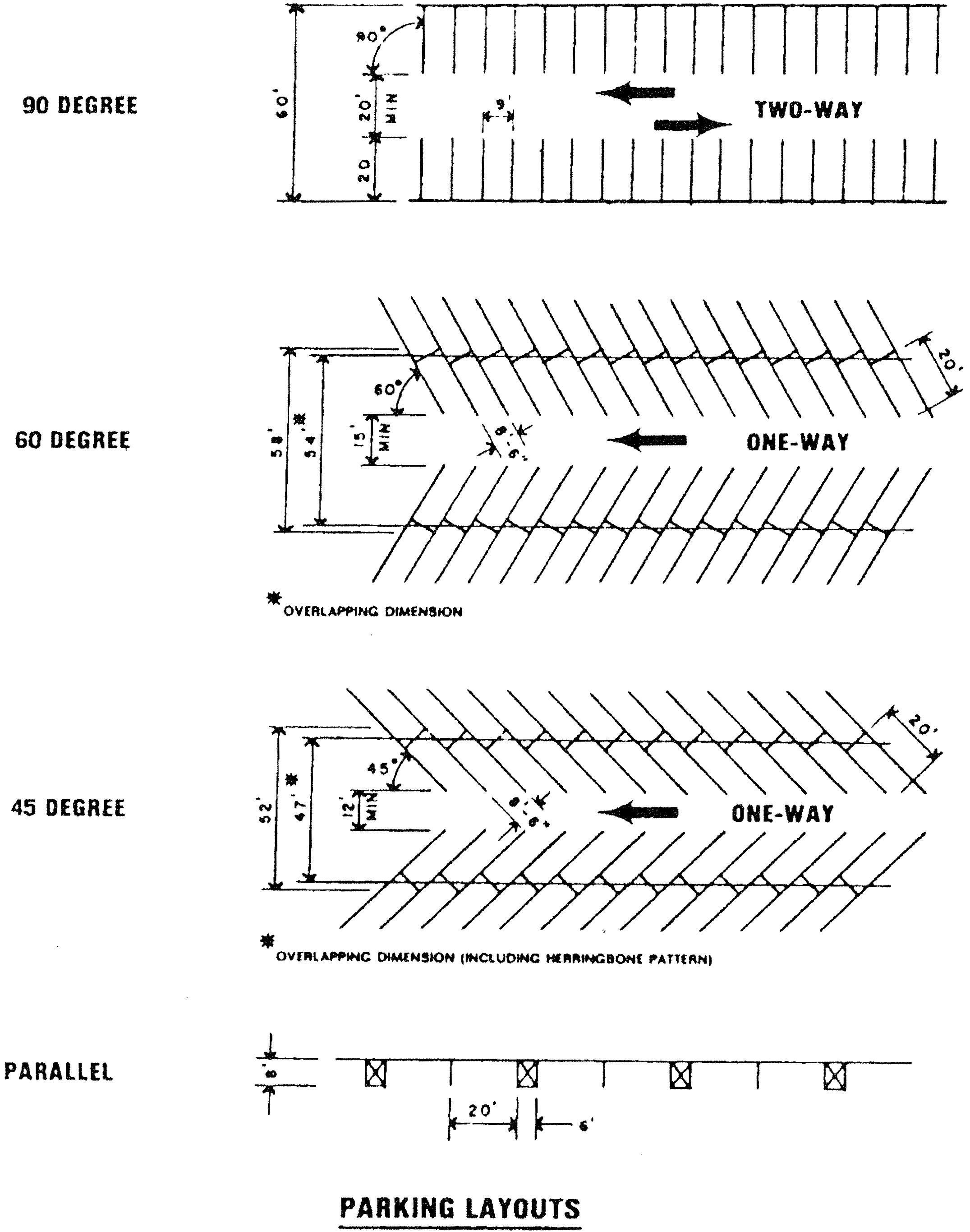 Plans for the layout of off-street parking facilities shall be in accord with the following minimum requirements:
