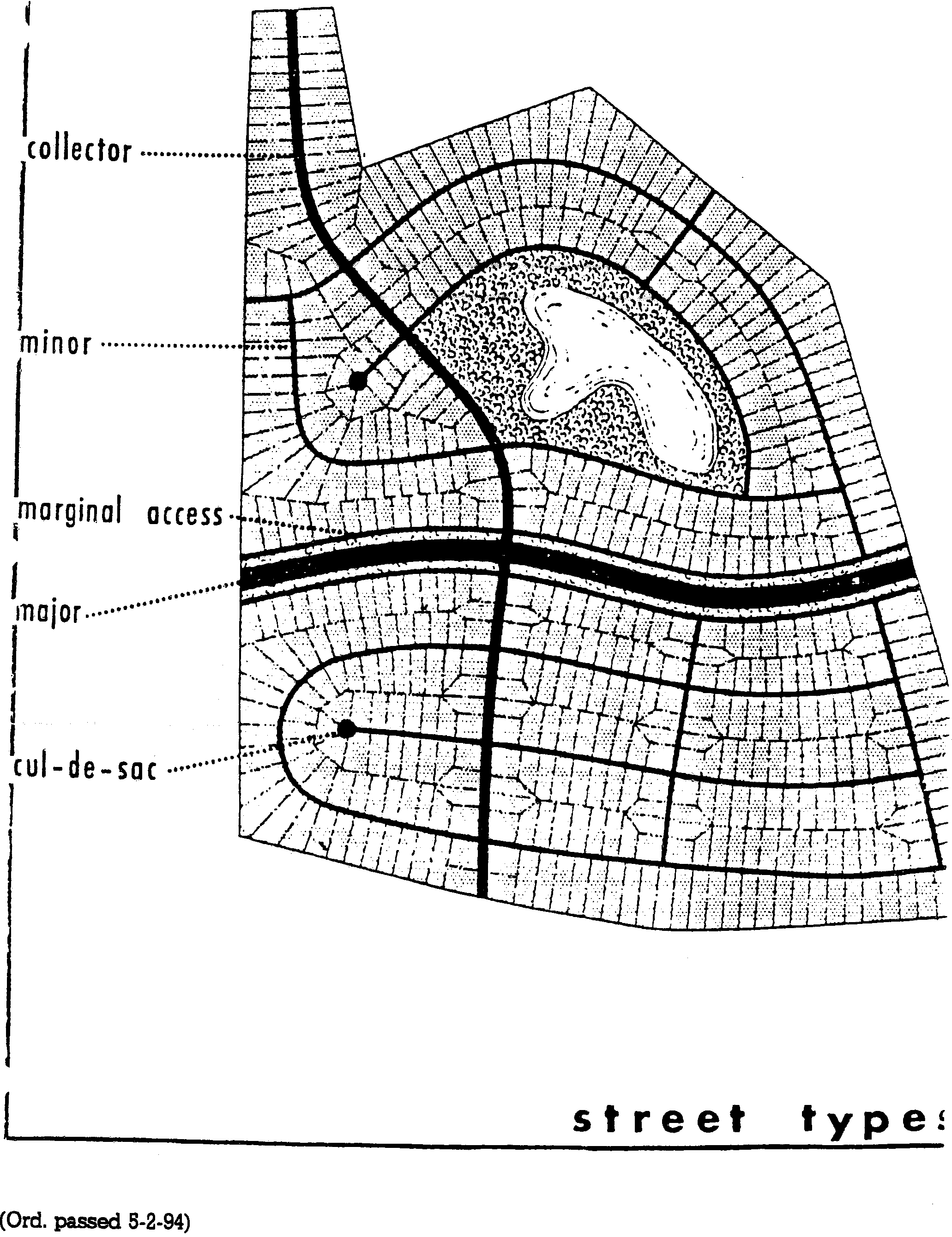 The tentative street and lot arrangement.