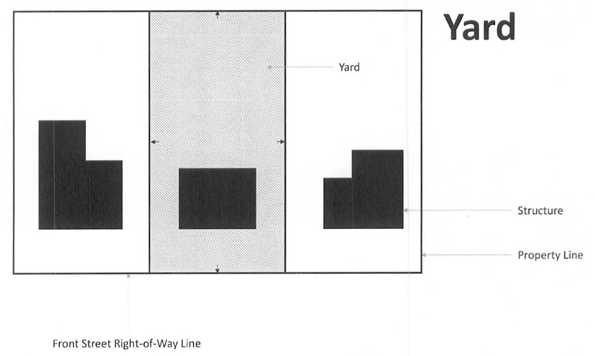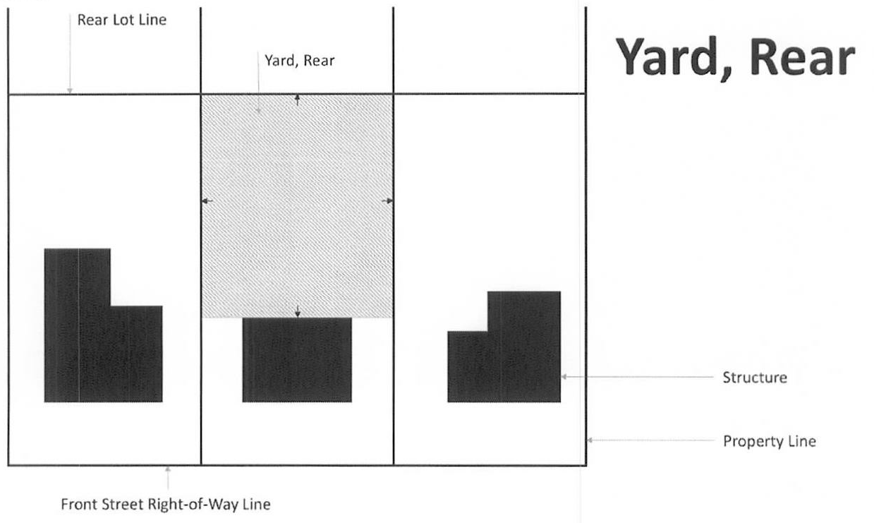 Yard, rear: A yard extending along the full width of the rear lot line extending toward the front lot line for a depth as specified in the yard regulations for the district in which such lot is located.