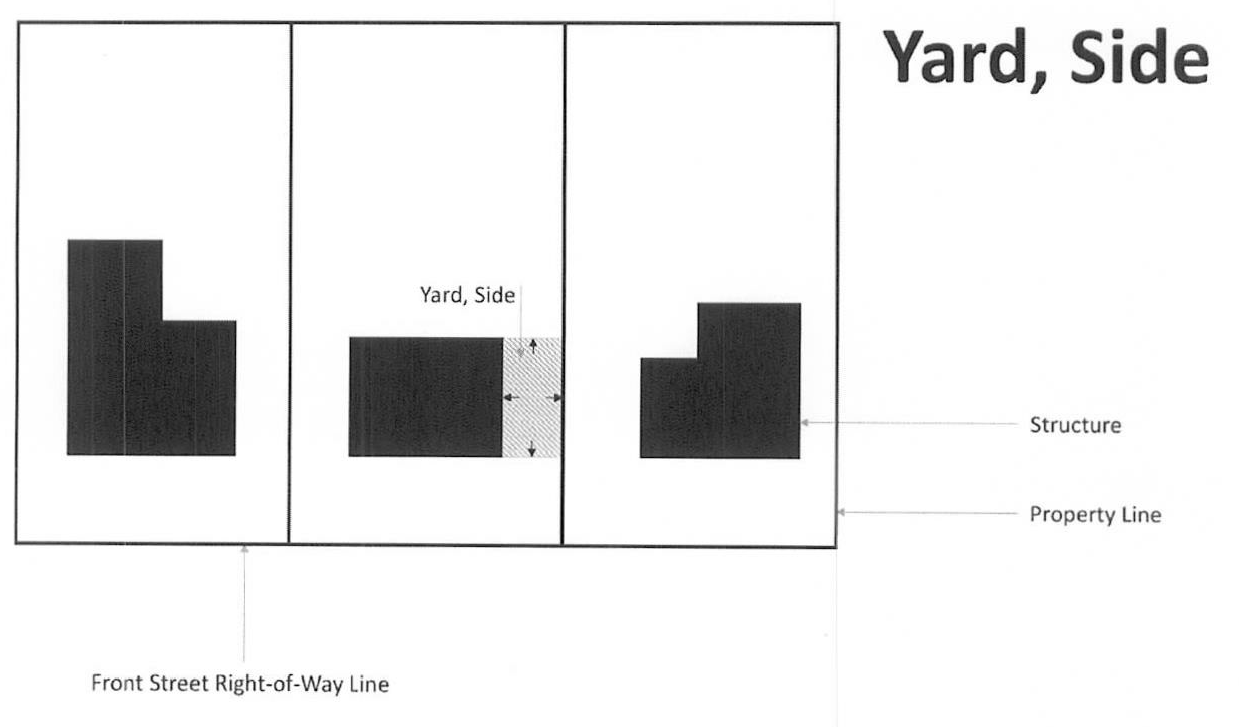 Yard, side: A yard extending along the side lot line between the front and rear yards, having a width as specified in the yard regulations for the district in which such lot is located.