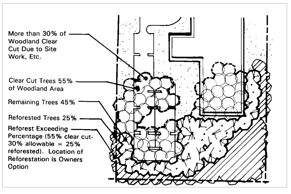 Rationale: The provisions of this section are designed to ensure that reforestation efforts required as part of woodland disruption mitigation standards result in the thorough and reasonably rapid replacement of the important and varied environmental functions which woodlands provide.