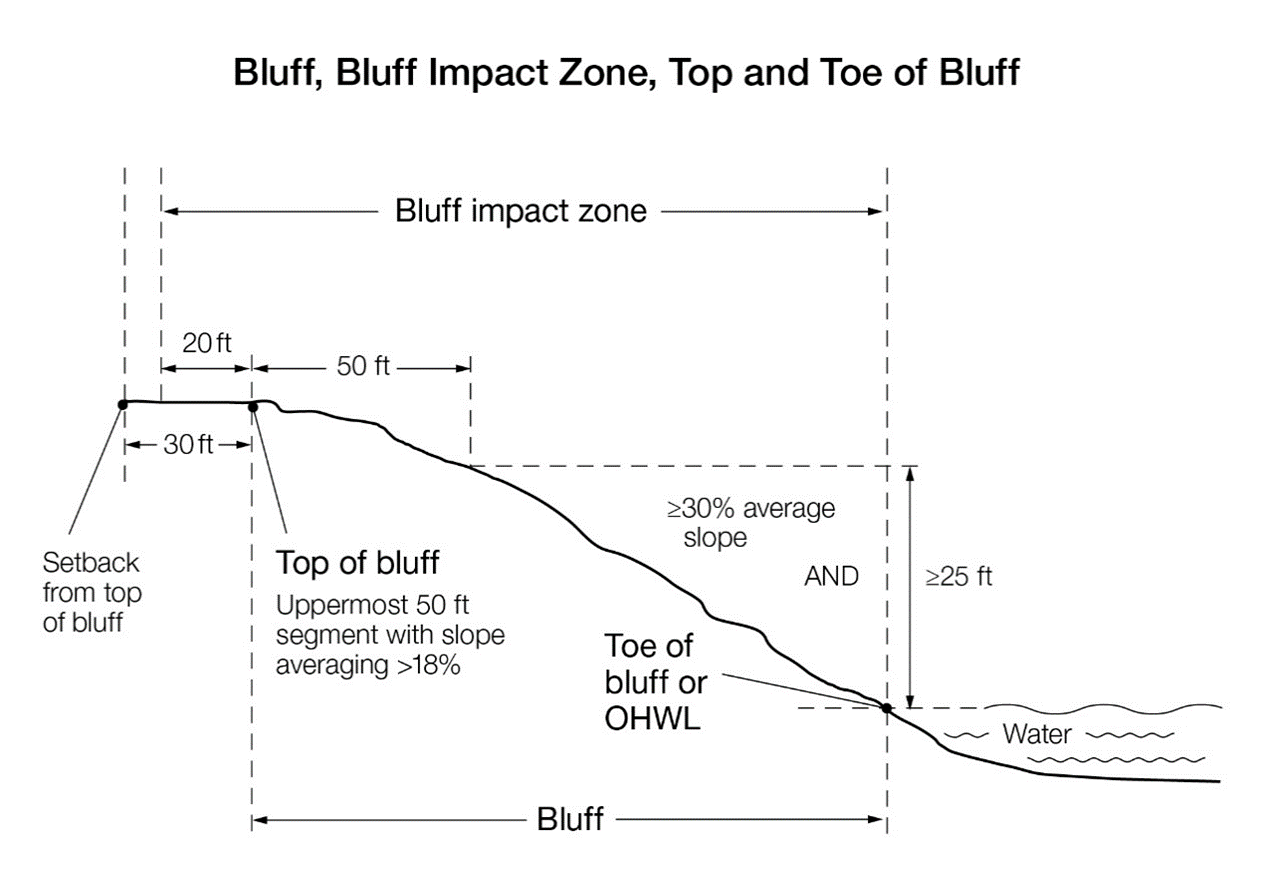 Steep slopes means lands having slopes over 12 percent, as measured over horizontal distances of 50 feet or more, that are not bluffs.