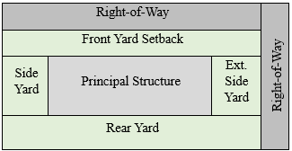 When determining the allowable height of a fence the graphic below shall determine location of front yard and exterior side yard setback, allowing for corner lots to have a privacy fence in the back yard.