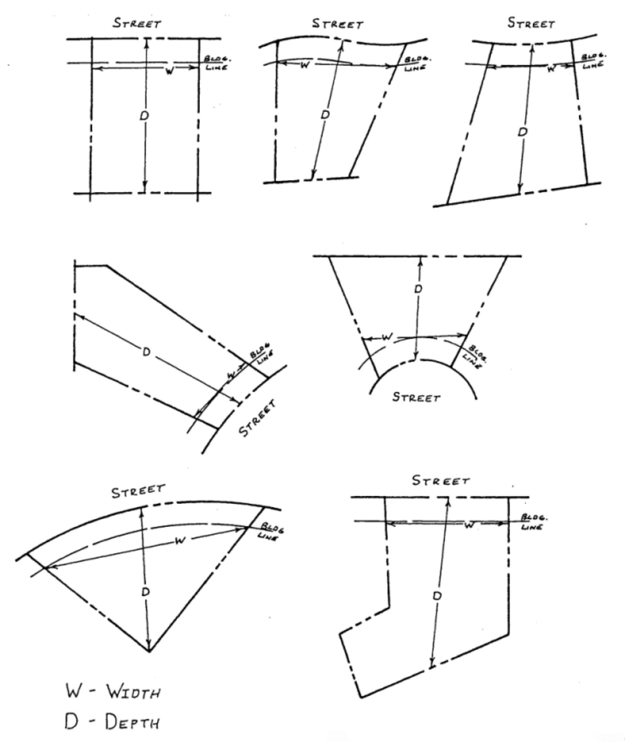 Depth of required front yards shall be measured at right angles to the front lot line.