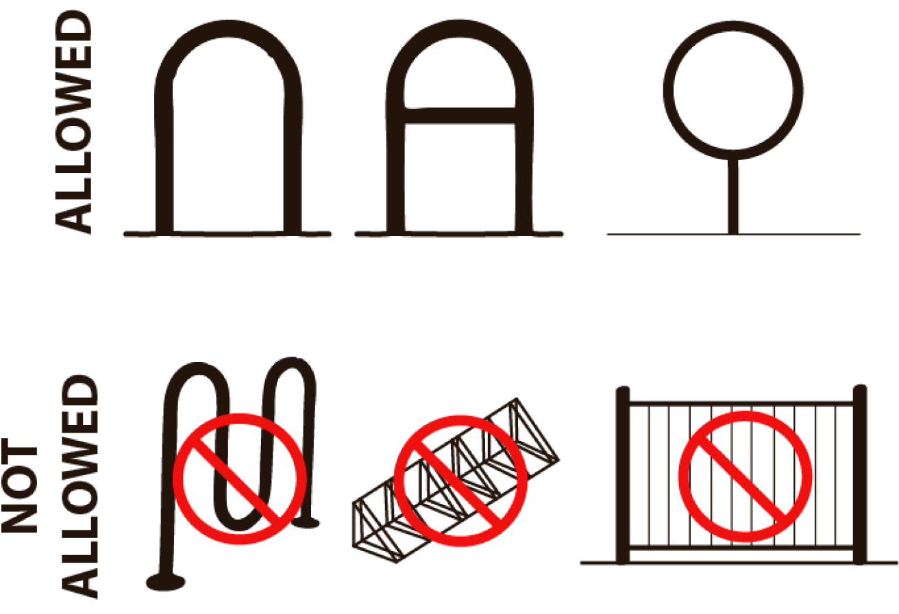 Each bike rack shall be designed to accommodate two bike parking spaces using the allowed bike rack designs below.