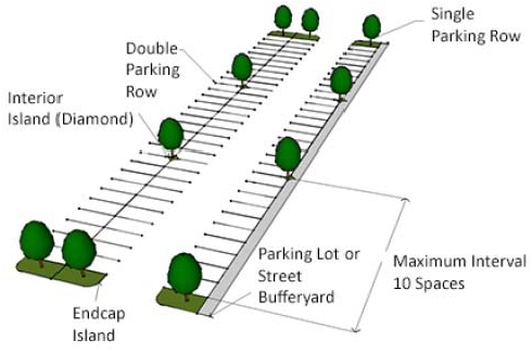 Interior islands may be a parking space or a diamond-shaped planter.