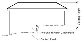 Building height means the vertical distance from the average of the finished ground level at the center of all walls of a building to the highest point of the roof surface, exclusive of chimneys, ventilators, pipes and similar apparatus. See Figure 2-2.